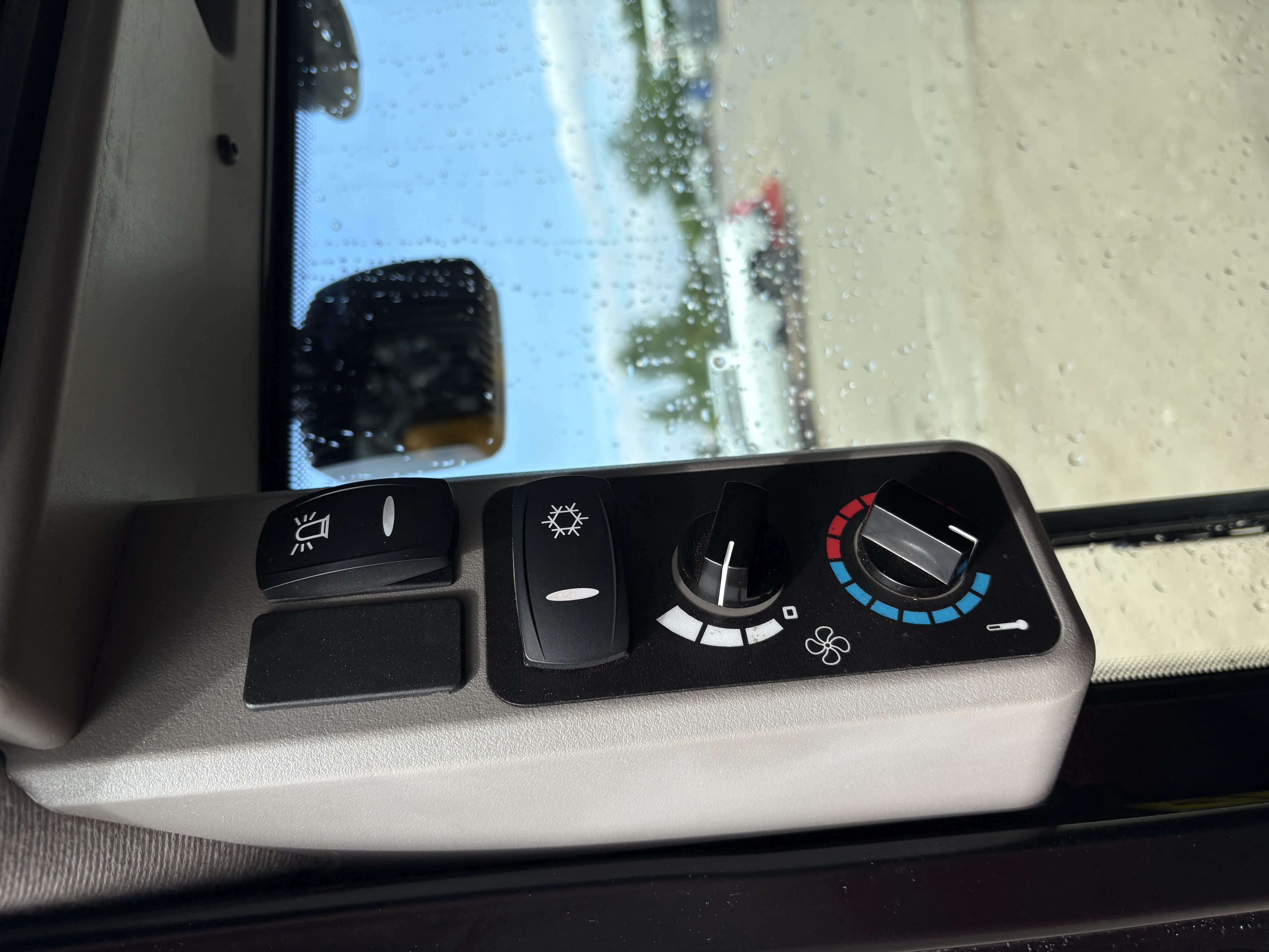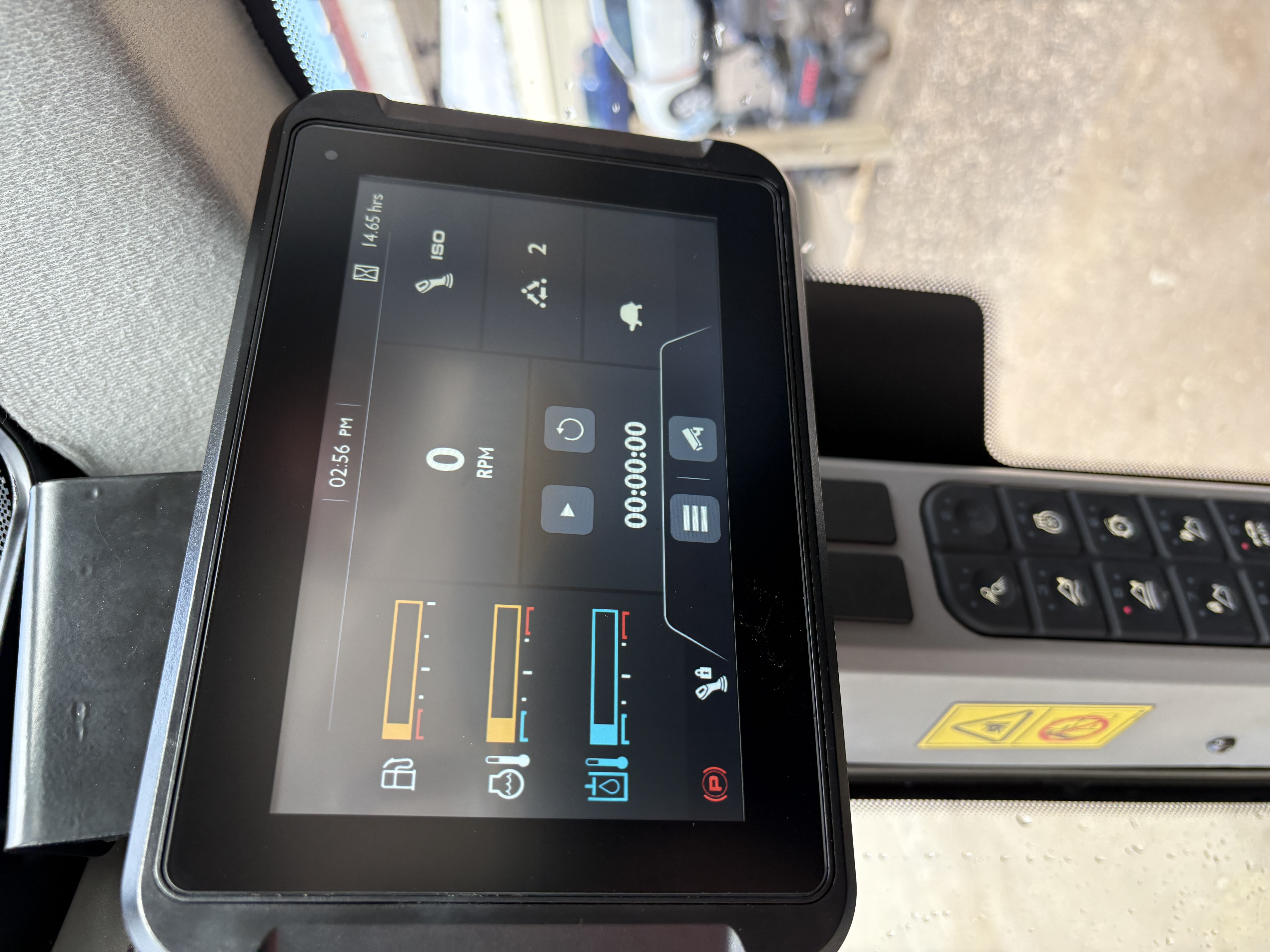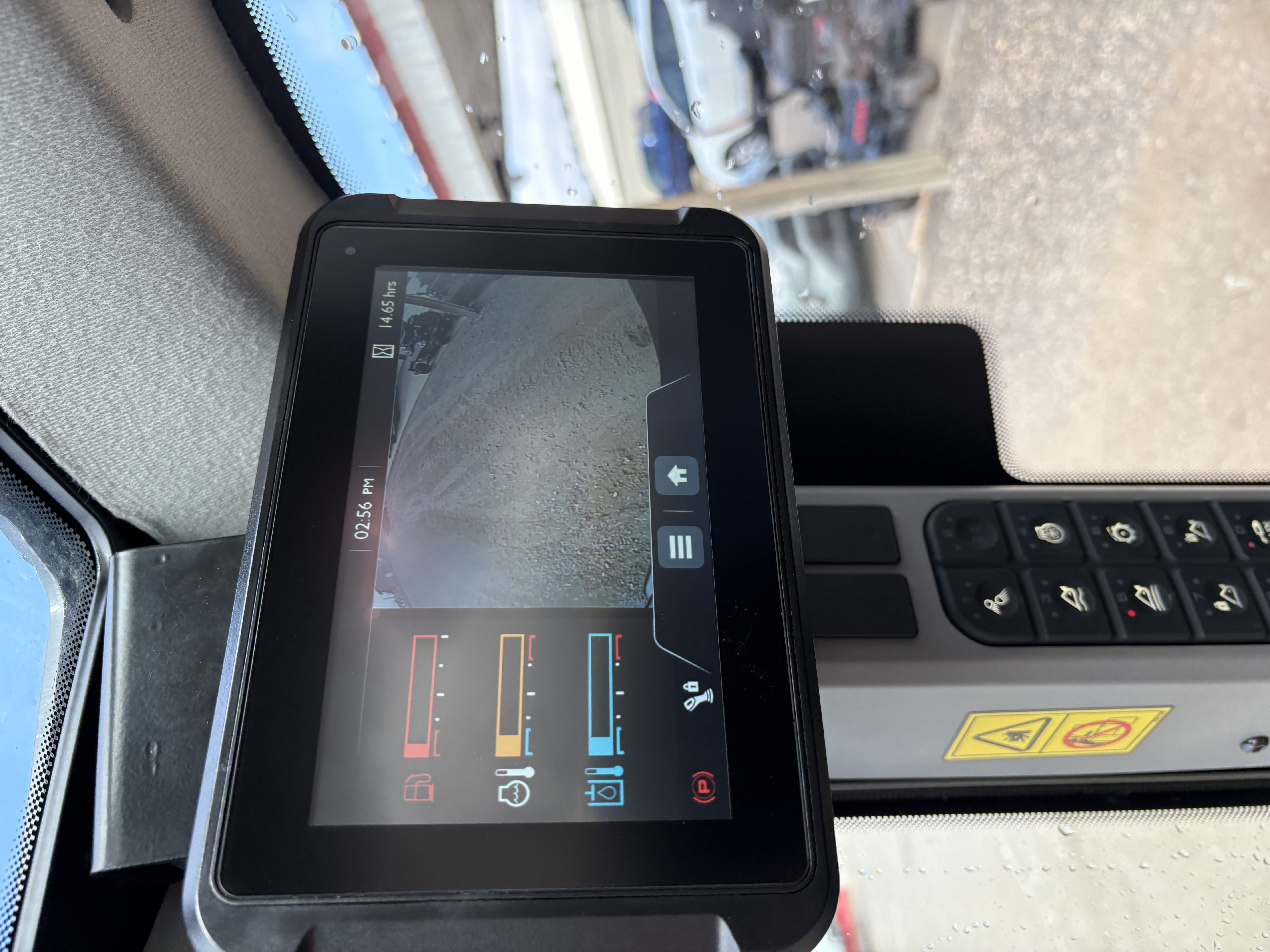 - The updated cab was designed with ease of use and operator comfort in mind. The new 7” touchscreen display is mounted in the top right-hand side of the cab. With this customized control area, the operator can now change settings much faster with the opportunity to set MyChoice controls, reversing fan intervals, toggle the new job timer, view the reversing camera and much more.