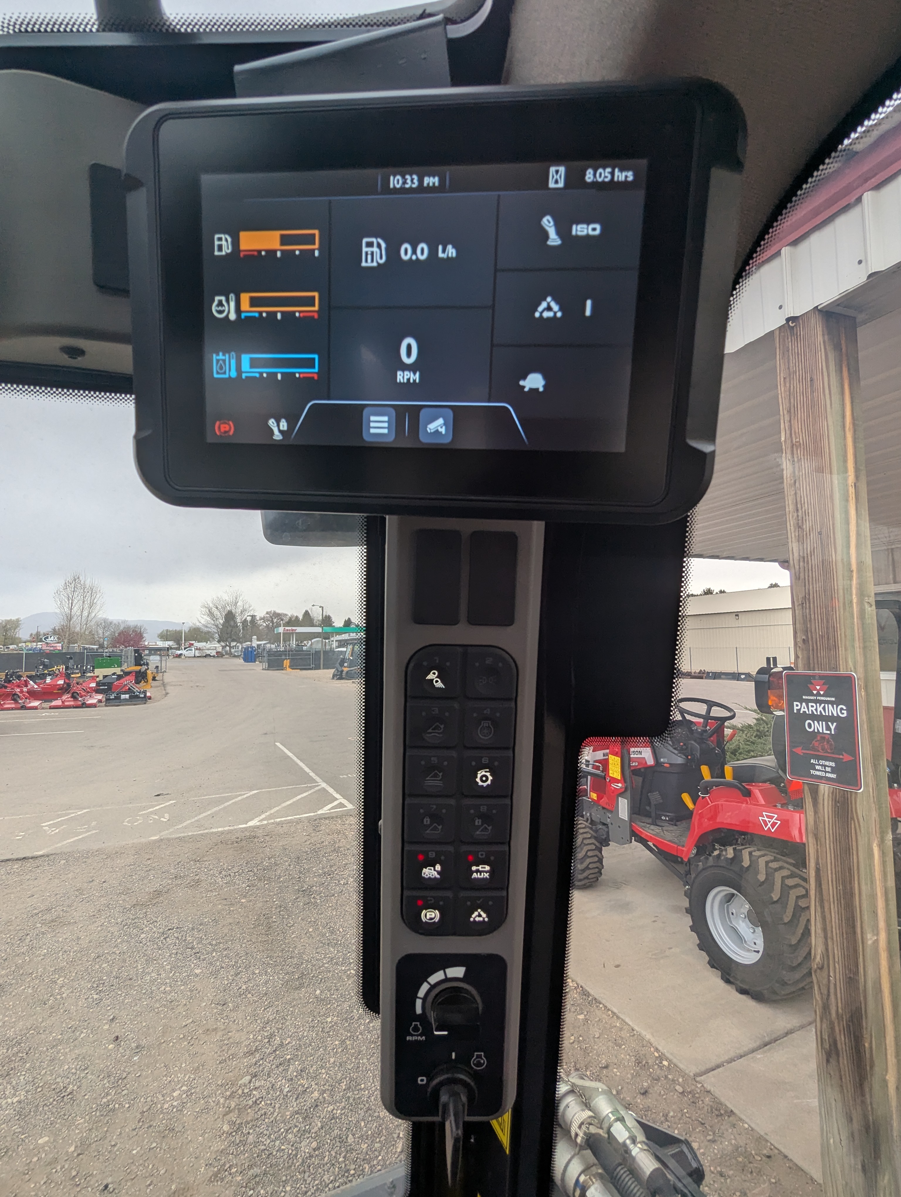 - The new touch screen display is mounted in the top right-hand sides of the cab which will allow the operator to change settings much faster. You can customize the control area as well as set MyChoice controls, reversing fan intervals, toggle the new job timer and more all from the touch display.