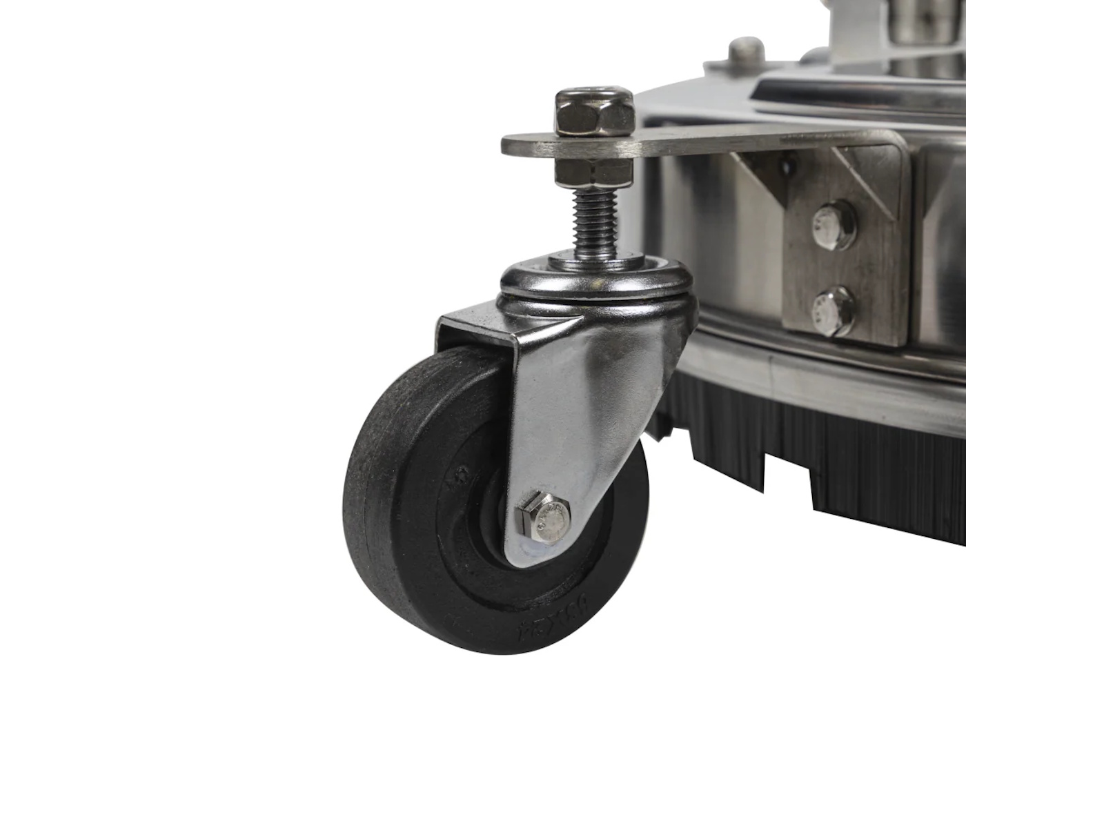 Other surface cleaners are made of plastic or composite materials but the 20” Whirl-A-Way has a stainless steel housing built to withstand commercial and industrial use. The steel body resists impacts, corrosion and wear while shielding the internal components—including the rotary arm and nozzle assembly.