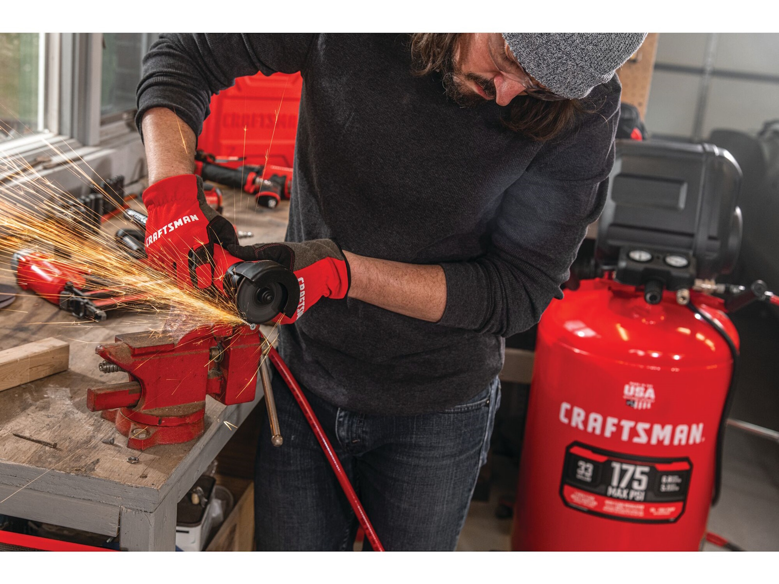 With 2x longer runtime*, this 33 gal. 175 PSI Oil-Free Portable Vertical Air Compressor is the ideal tool whether you want to inflate your tires, work under the hood, or spray paint the fence. With 5.1 SCFM at 90 PSI, the high-performance direct drive UMC pump provides 48% higher SCFM air delivery*. The oil-free pump is cold start capable and eliminates the need for oil separators during painting projects. A high flow regulator and 2 high flow quick couplers help deliver maximum air flow and power to your air tools, while hard rubber 9 in. wheels and a vertical design enhance portability around the shop, garage, or work site.
