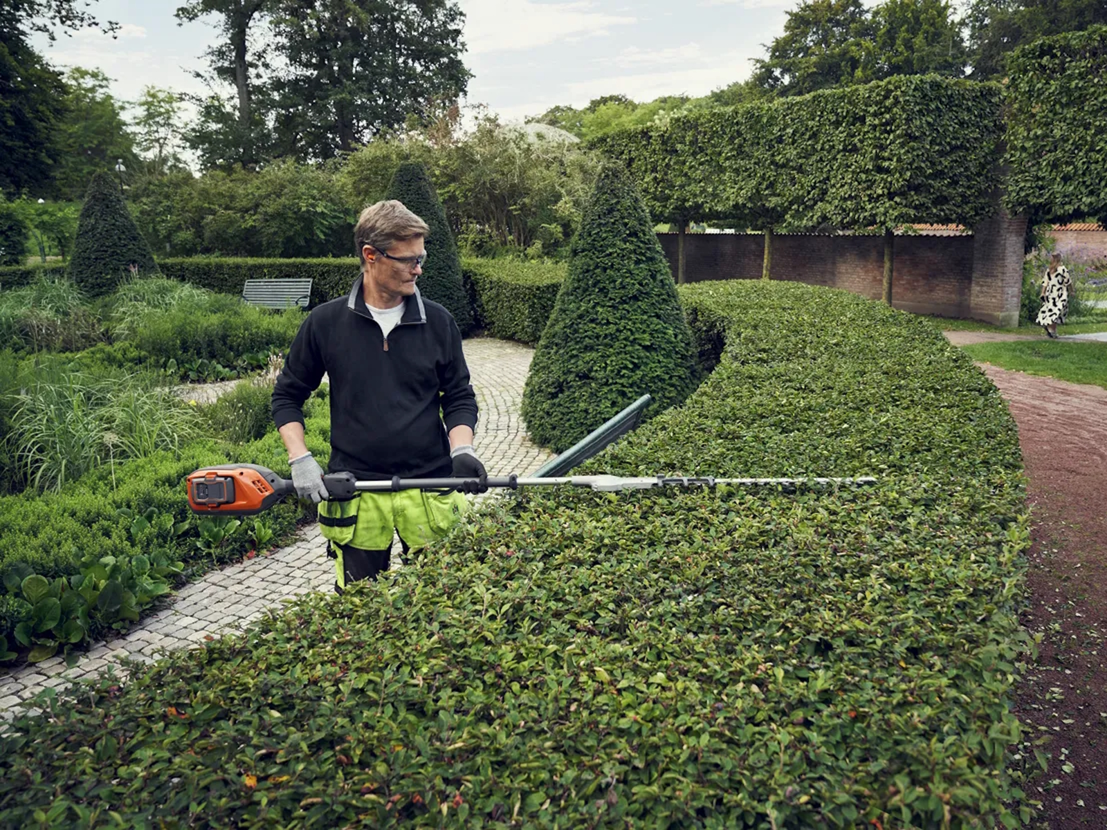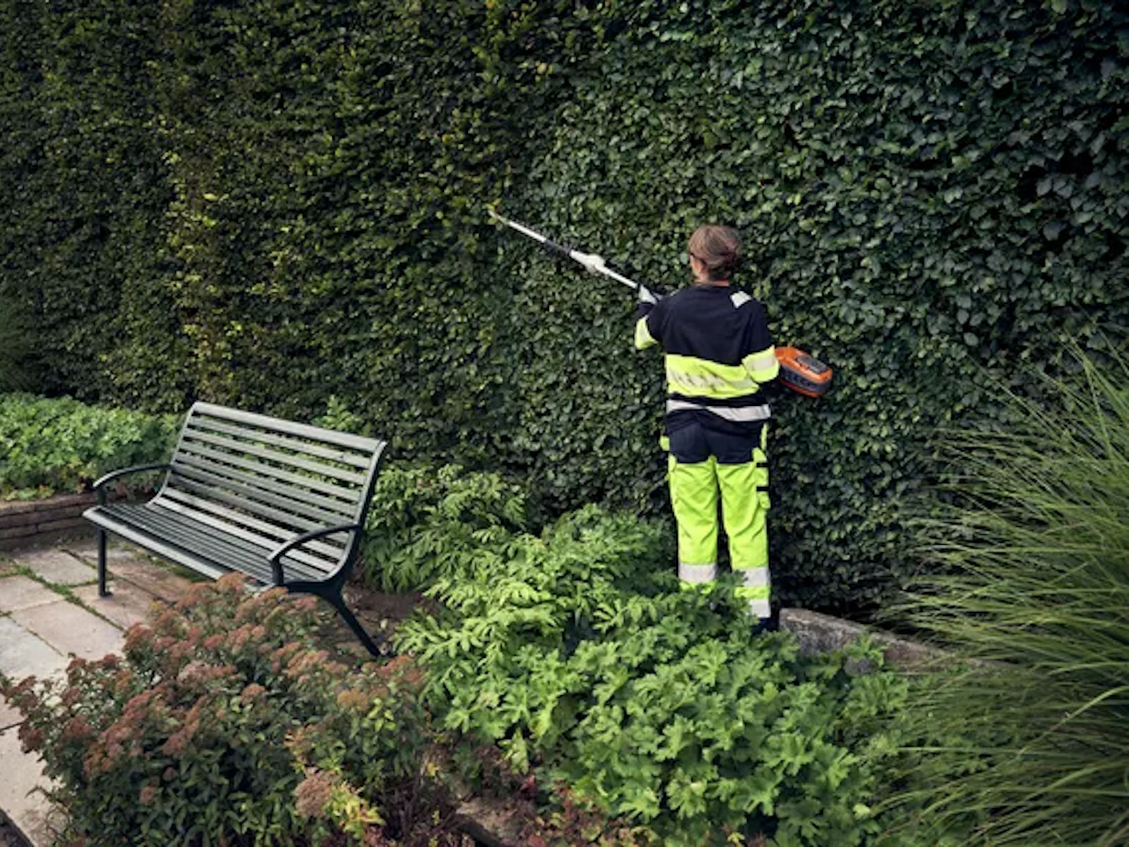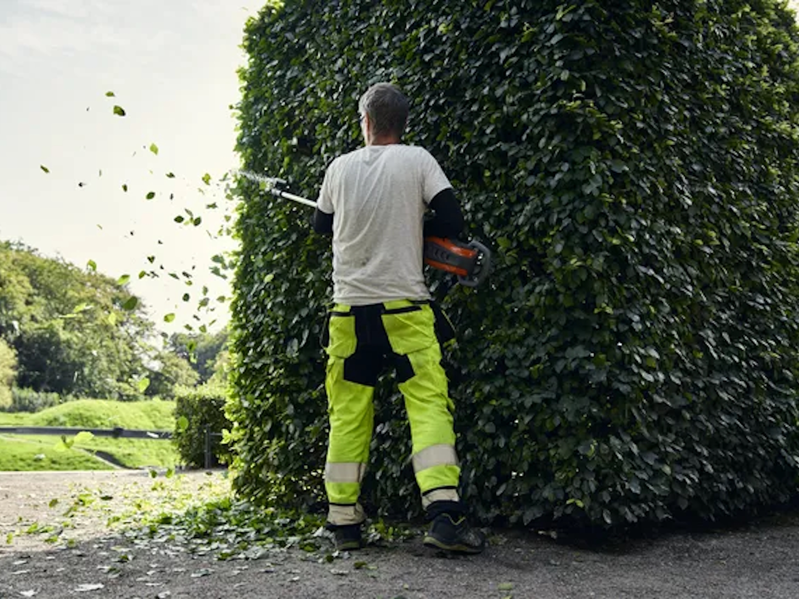 Low noise levels create pleasant work and enable longer working hours, even in the most public settings. The noise level from our battery machines is up to 13 dB(A) lower than a petrol machine. A reduction of 3 dB(A) is usually perceived as a halving of the noise level.