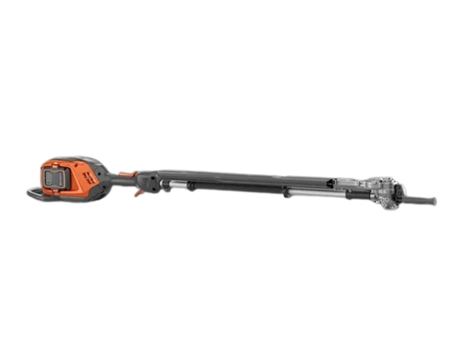Battery-powered pole hedge trimmer with 10 feet reach and fixed cutter bar