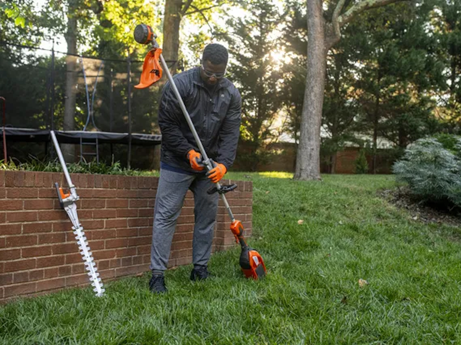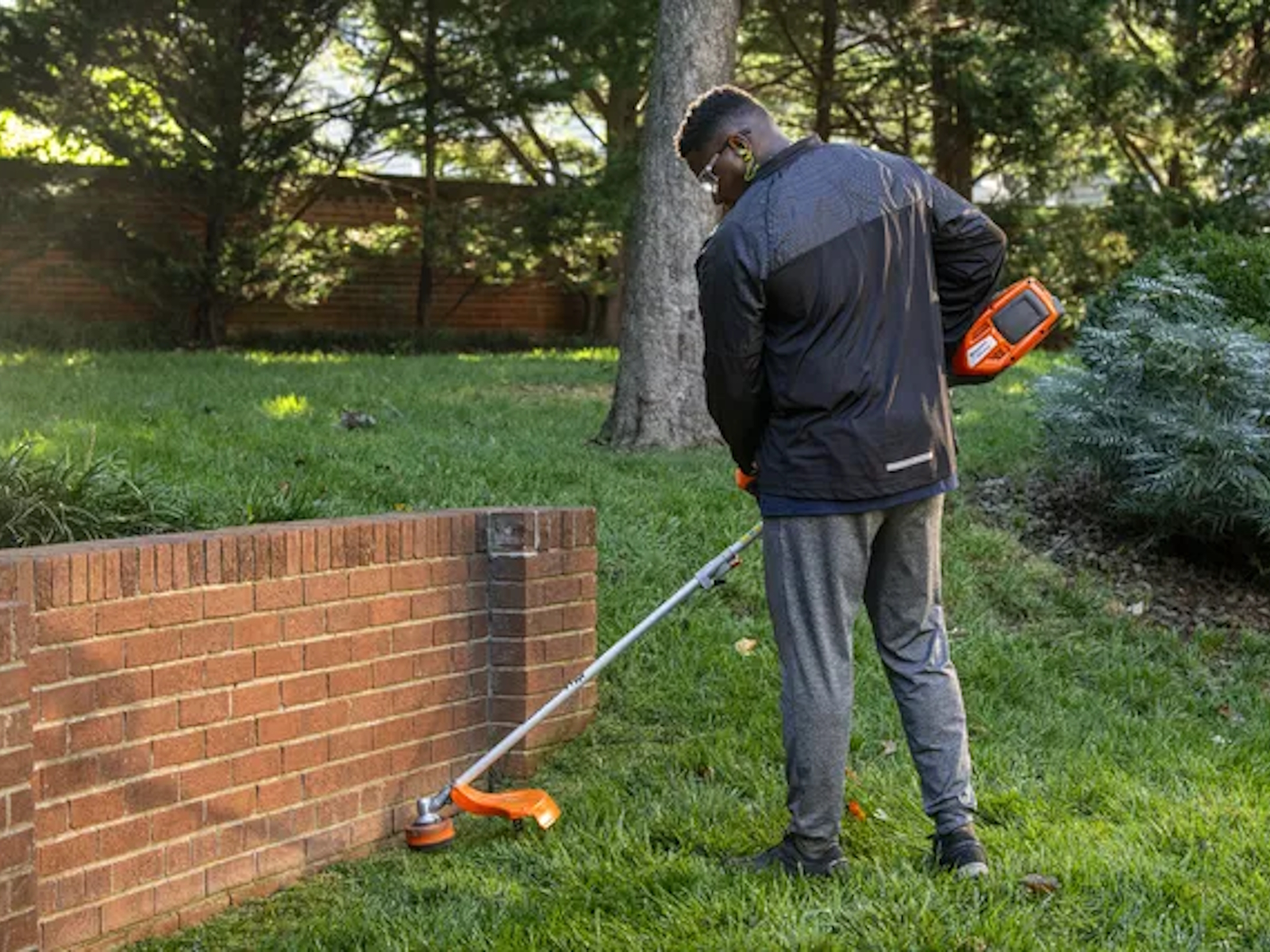 18" cutting path lets you spend less time trimming* *When compared to the leading competitor’s 56V, 2.5 Amp Hour string trimmer with 15-in cutting path.