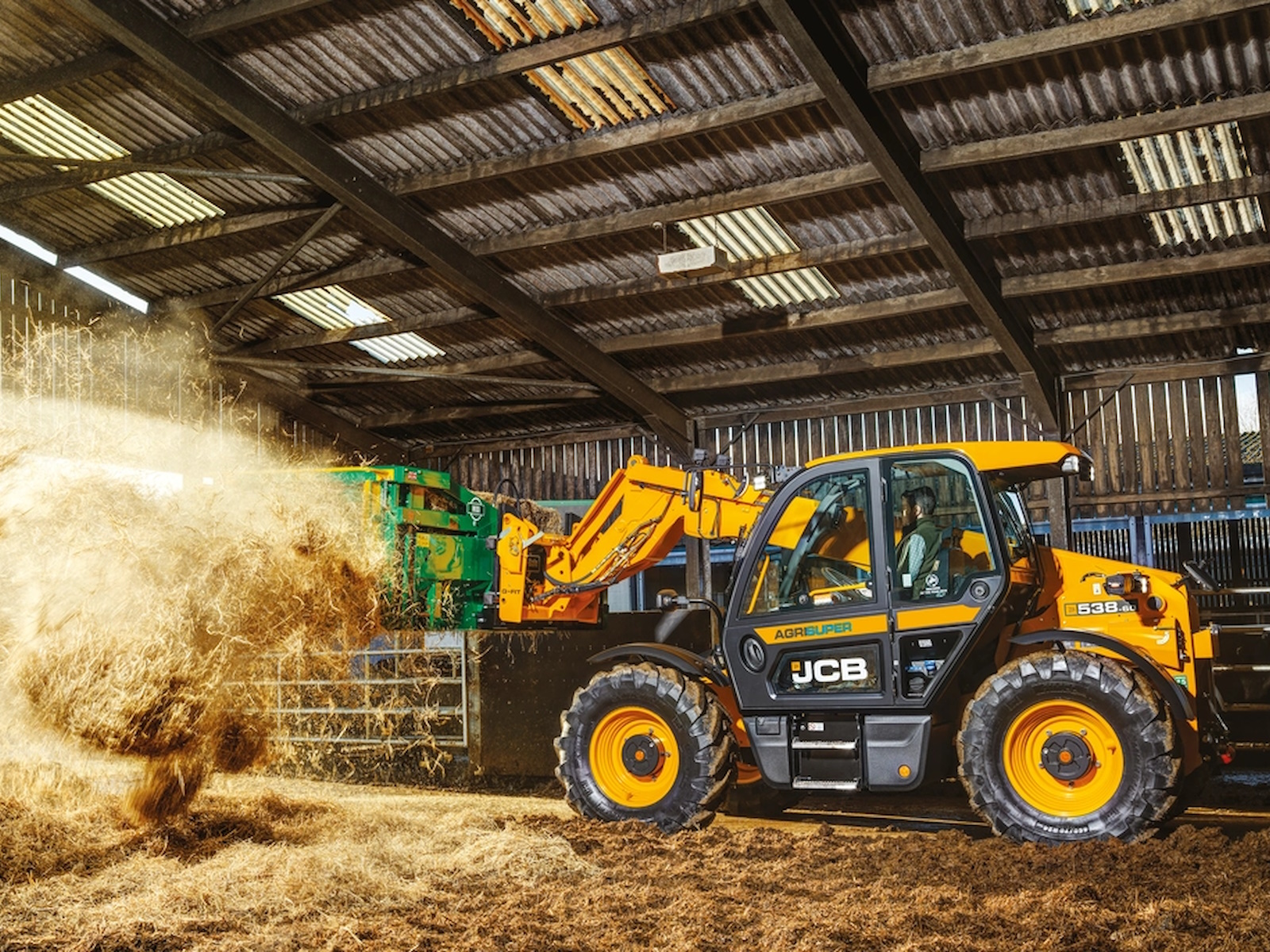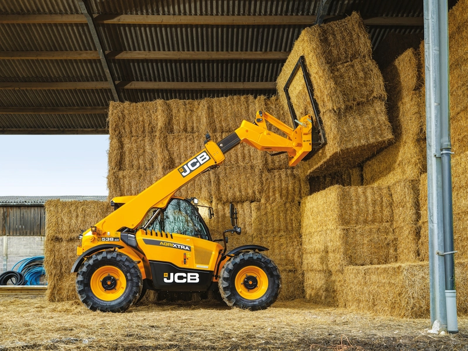The JCB 538-60 Agri is a highly efficient EcoMAX-powered telescopic handler. It sits on a chassis that's designed for load-bearing and stability.