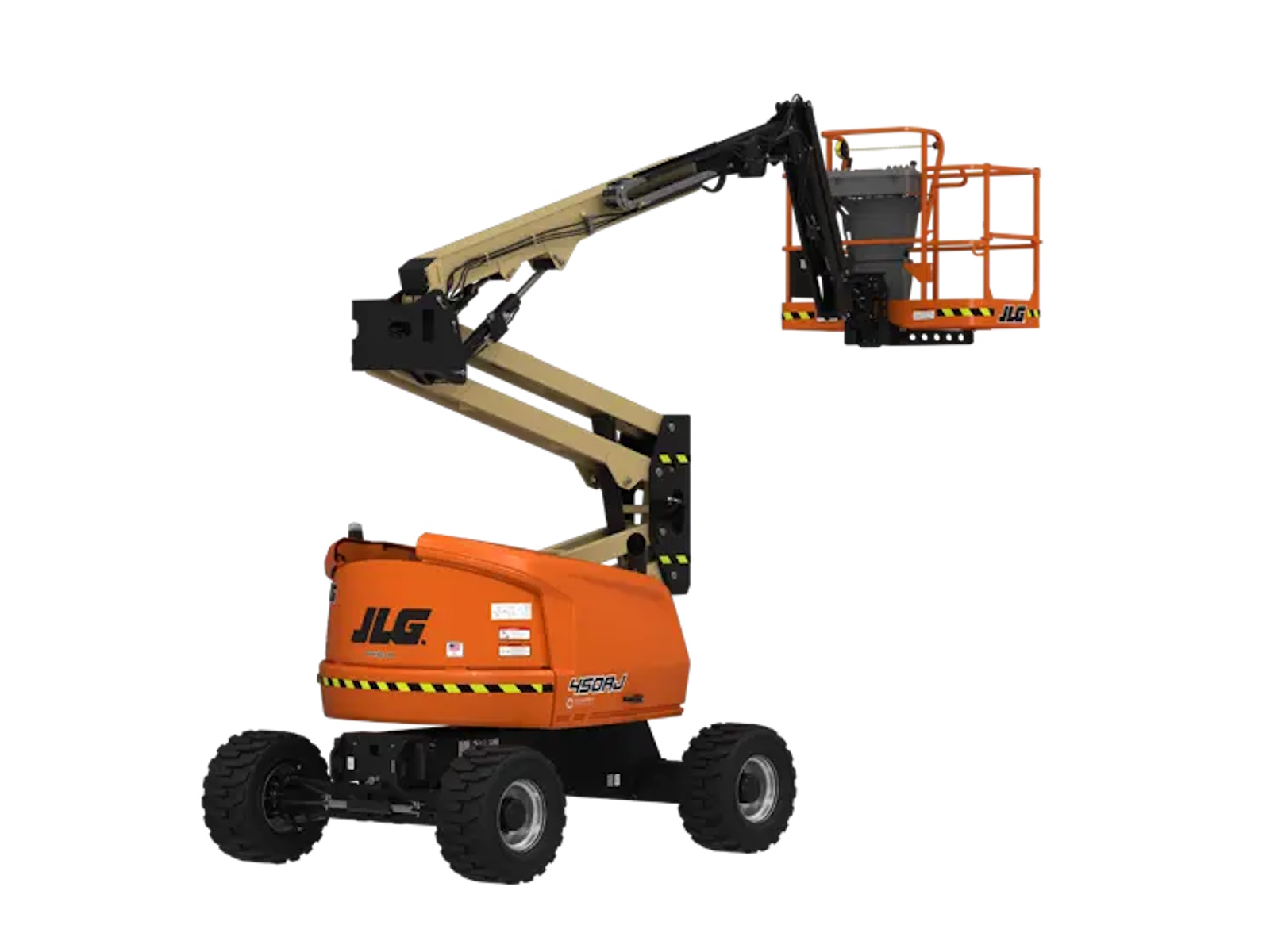 Boost your productivity with the improved multifunction capability of the JLG 450AJ. Its new DuraTough hood design delivers more durability and ease of service, and its larger 550-lb. capacity means more efficient operations.