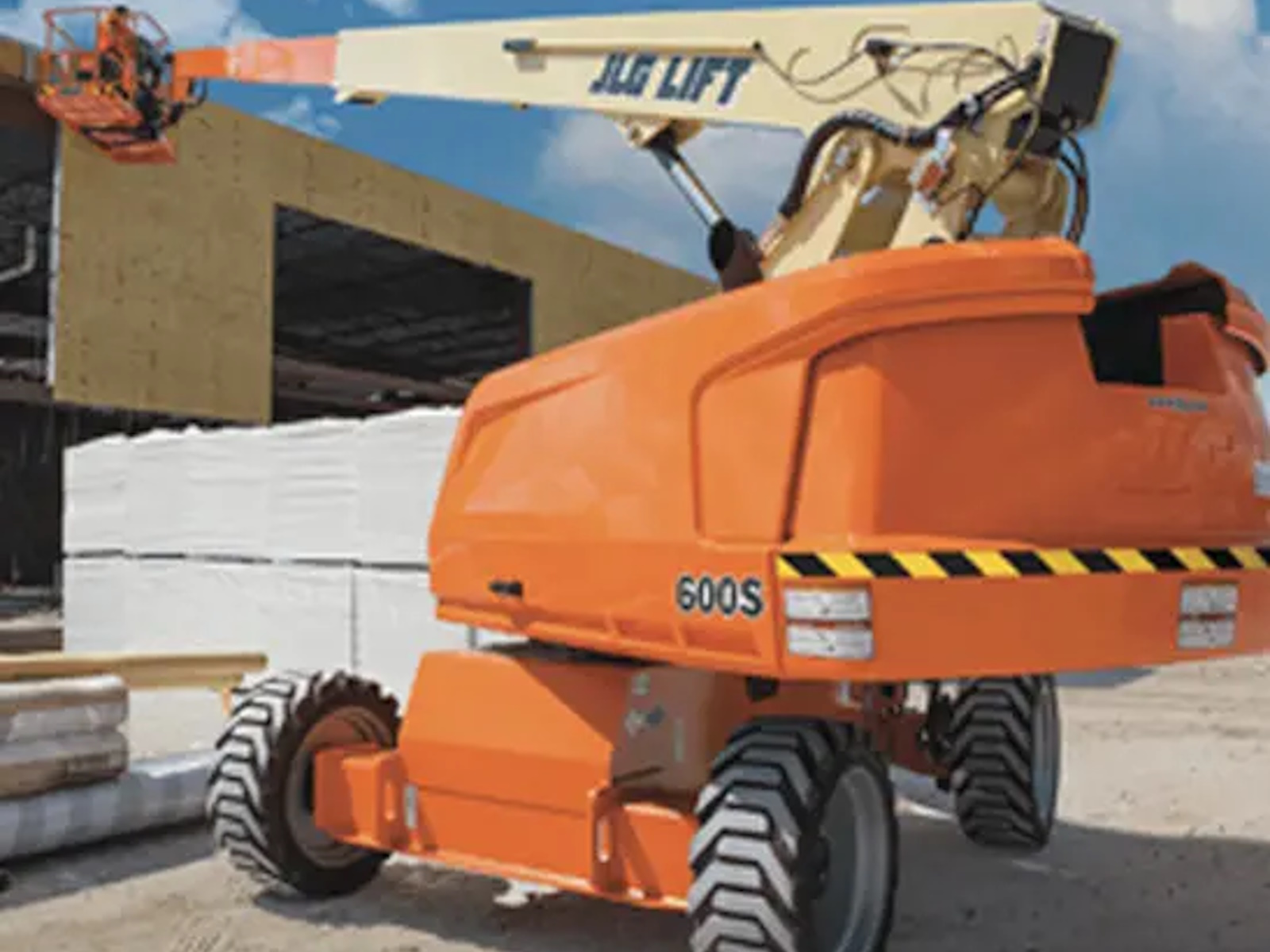 The JLG 600S is newly designed with a greater platform capacity of 600 lbs. And with faster ascent, you'll reach full height quicker for higher productivity on the job site.