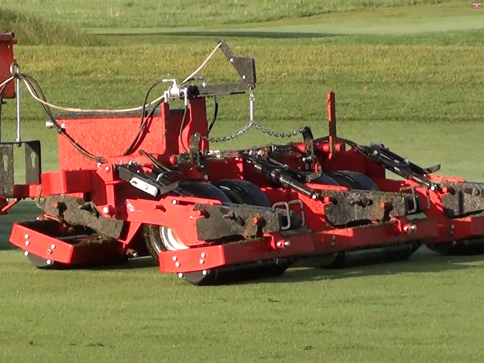 The Pro-Roll has individual roller assemblies that both conform to contour changes and provide consistent compaction across the entire width of the machine. Each 26 inch wide roller can float up and down, as well as side to side, completely independent of the adjacent roller. This allows accurate tracking of contour changes that are found around fairway hazards, approaches or even on a corporate campus. This also means that individual roller assemblies do not need to be leveled or calibrated, saving time; simply hook up and go!