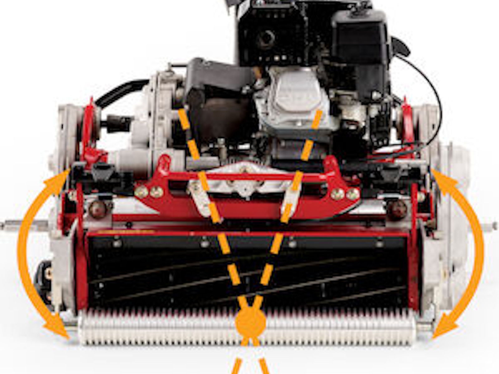 - Integrated "Flex" linkage system allows cutting units to pivot around the center of the front roller