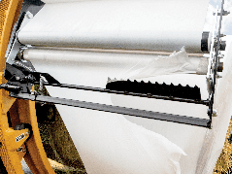 Standard on all inline Balewrapper models, Tubeline’s Film Snap easily cuts wrap with a single action. Press and hold the Film Snap plunger located beside the operator’s panel until both the tensioners pass, triggering the cutting action. The Film Snap bar snaps into action safely cutting the wrap without stopping the cycle.